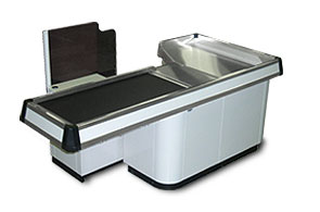 60 deg. rear flare design provides added cashier working clearance